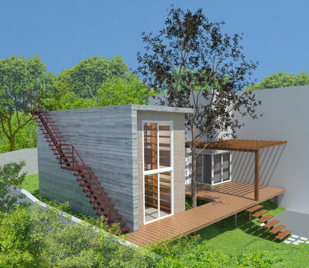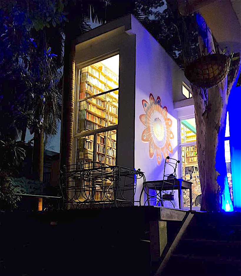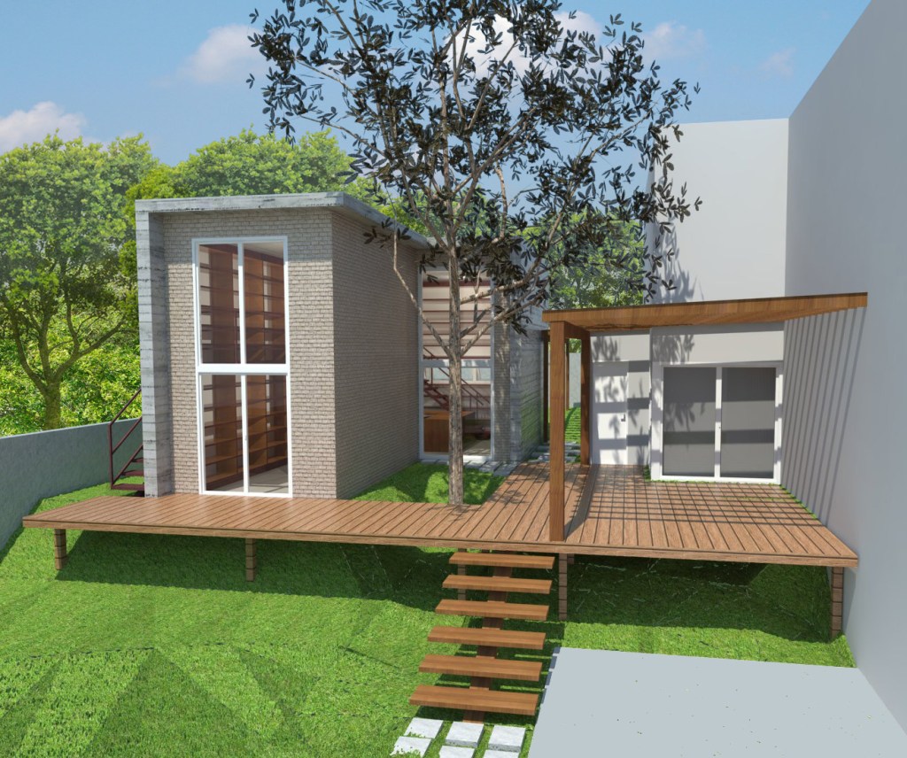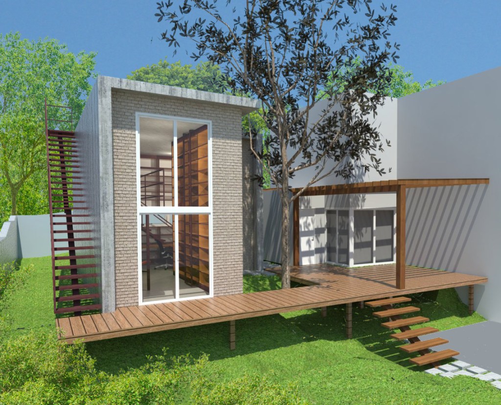 O anexo foi projetado para abrigar os 6000,00 livros do morador, um leitor contumaz; como não podiamos eliminar nenhuma árvore, resolvemos que o volume abraçaria estas e tiraria partido do pé direito alto com a bela vista para o jardim já consolidado da residência.