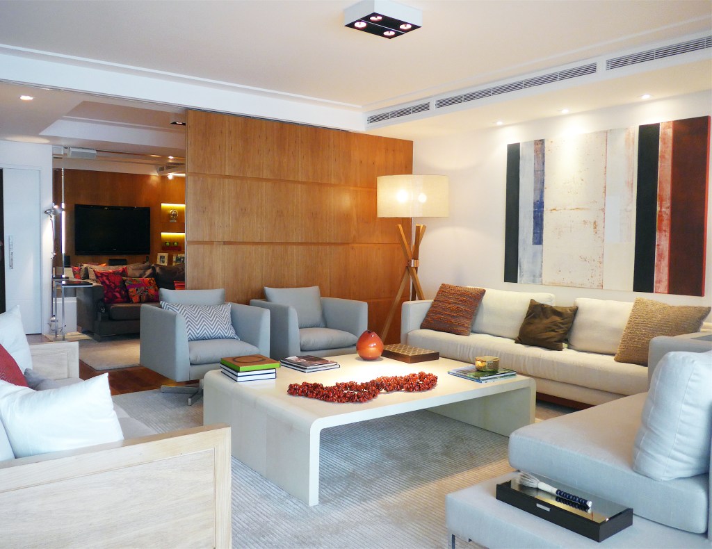 Tenho um carinho espeçial por este projeto pois acompanho os moradores a mais de 7 anos; as crianças cresceram e cada uma precisou de um quarto individual. A varanda virou sala de jantar e um canto de estudos; a sala de tv, antigamente a vedete do living, se tornou um ambiente mais reservado.
