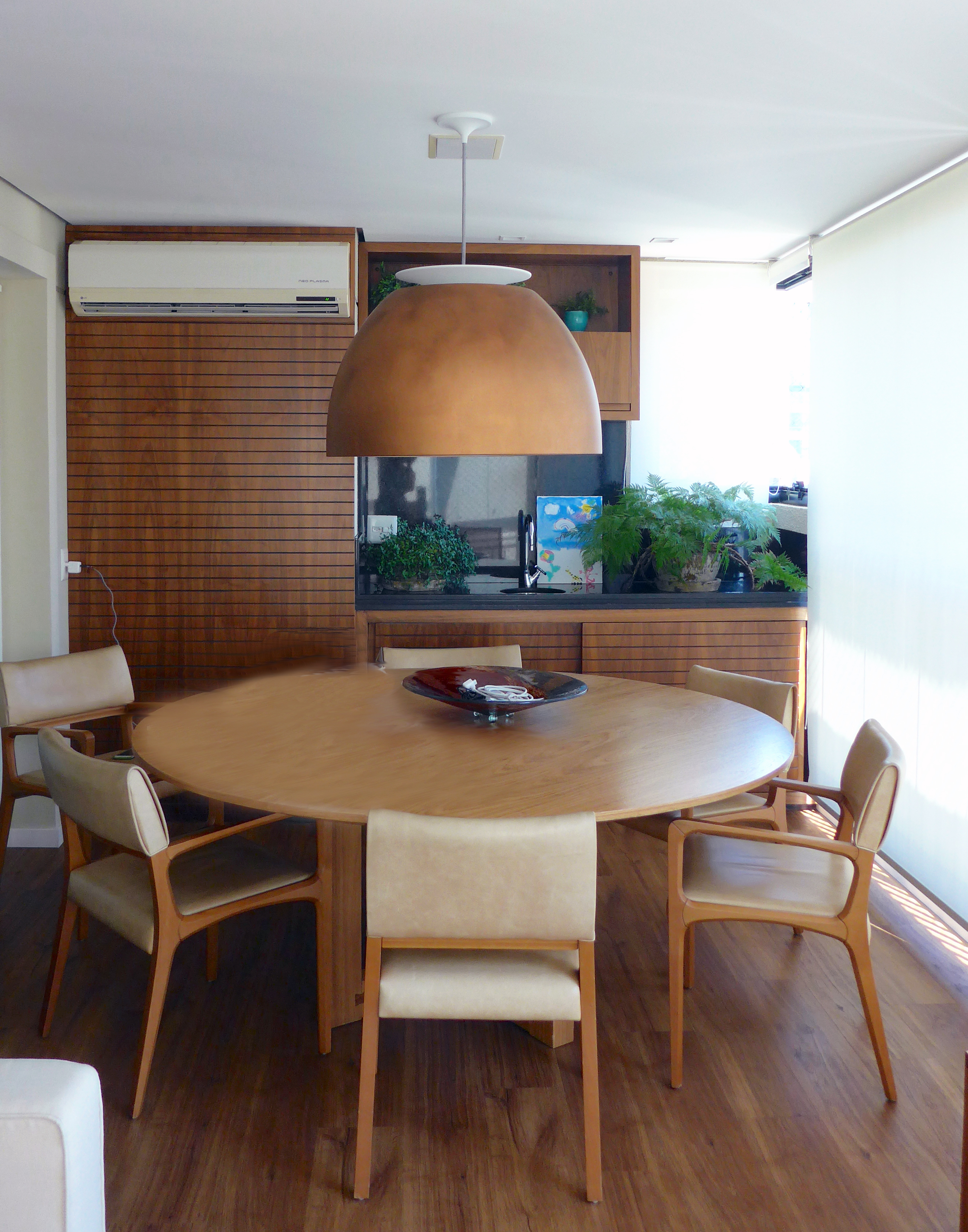 A moradora, muito atenta a todos os detalhes, foi adquirindo mobiliário de designers brasileiros e artistas consagrados como o Cássio Lázaro, Claudia Moreira Salles, Jê Américo dos Santos, Celso Orsini e Maura mello.