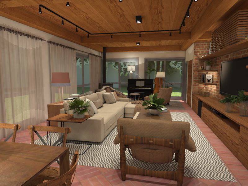 Neste residência de campo de estilo provençal, os clientes optaram por desenhar móveis de marcenaria sob medida, com madeira maciça.A idéia foi integrar a área da churrasqueira com as áreas sociais; nos quartos foram escolhidos tapetes , colchas e cortinas para dar maior aconchego aos convidados.