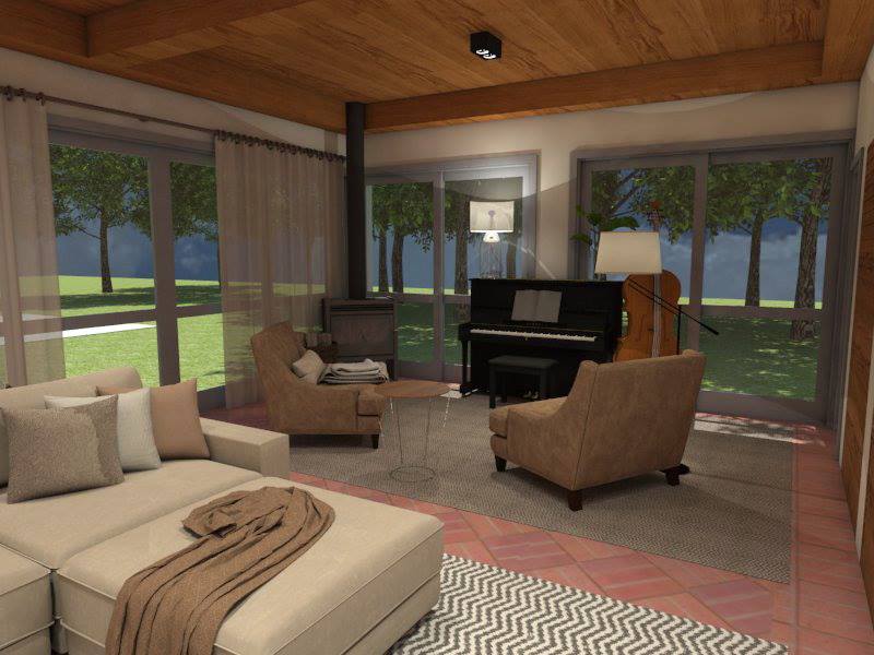 Para a área da edícula, criamos un anexo convivial, aonde todos poderão desfrutar deste espaço espaço multi-uso, para assistir filmes, ler estudar e ouvir música.Uma salamandra de ferro forjado foi instalada no canto da edificação para amenizar as noites frias.
