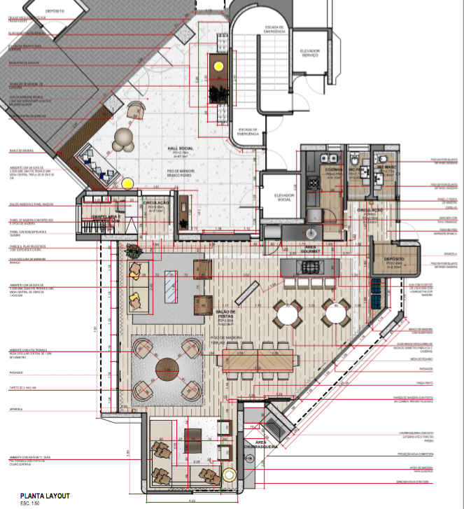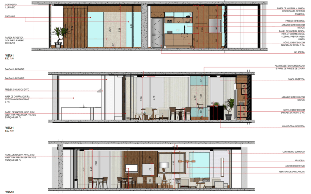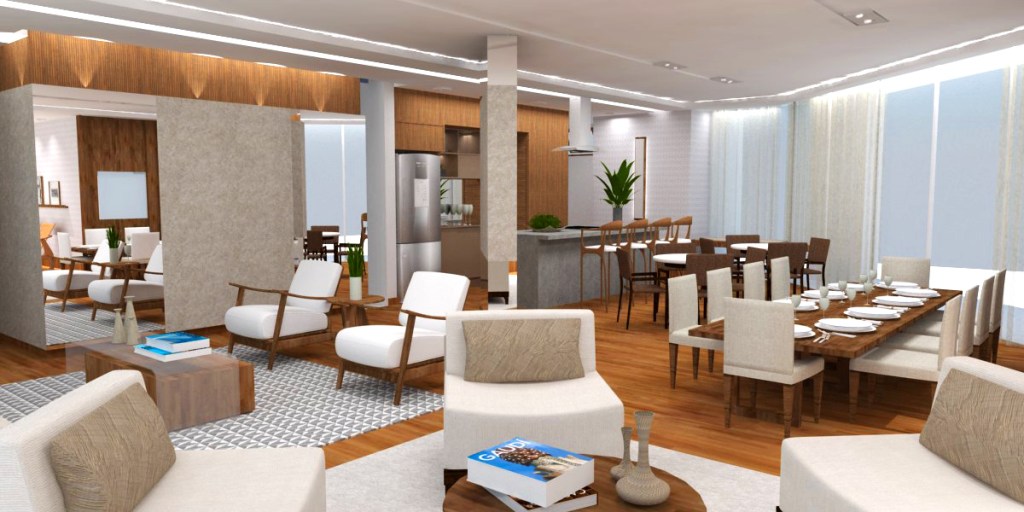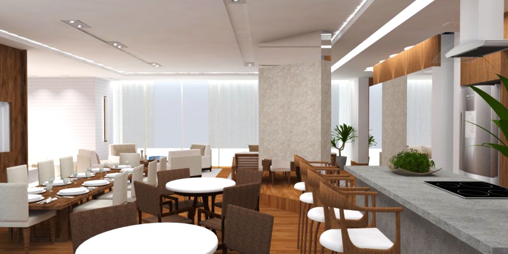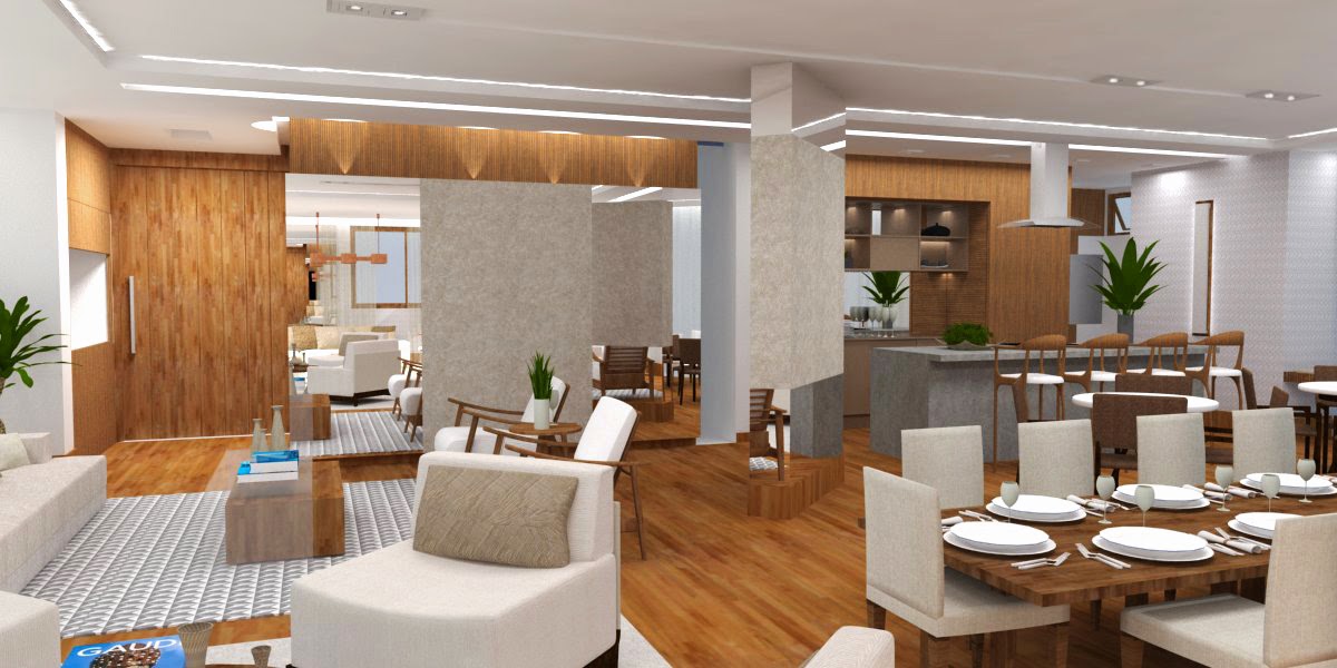 O objetivo deste projeto foi integrar visualmente os espaços do living, reuniões e área gourmet; criamos uma ilha aonde pudessem ser desenvolvidas atividades sociais em torno da culinária , com uma área de apoio com pia e geladeira . A área da cozinha contou com um apoio de churrasqueira externa .