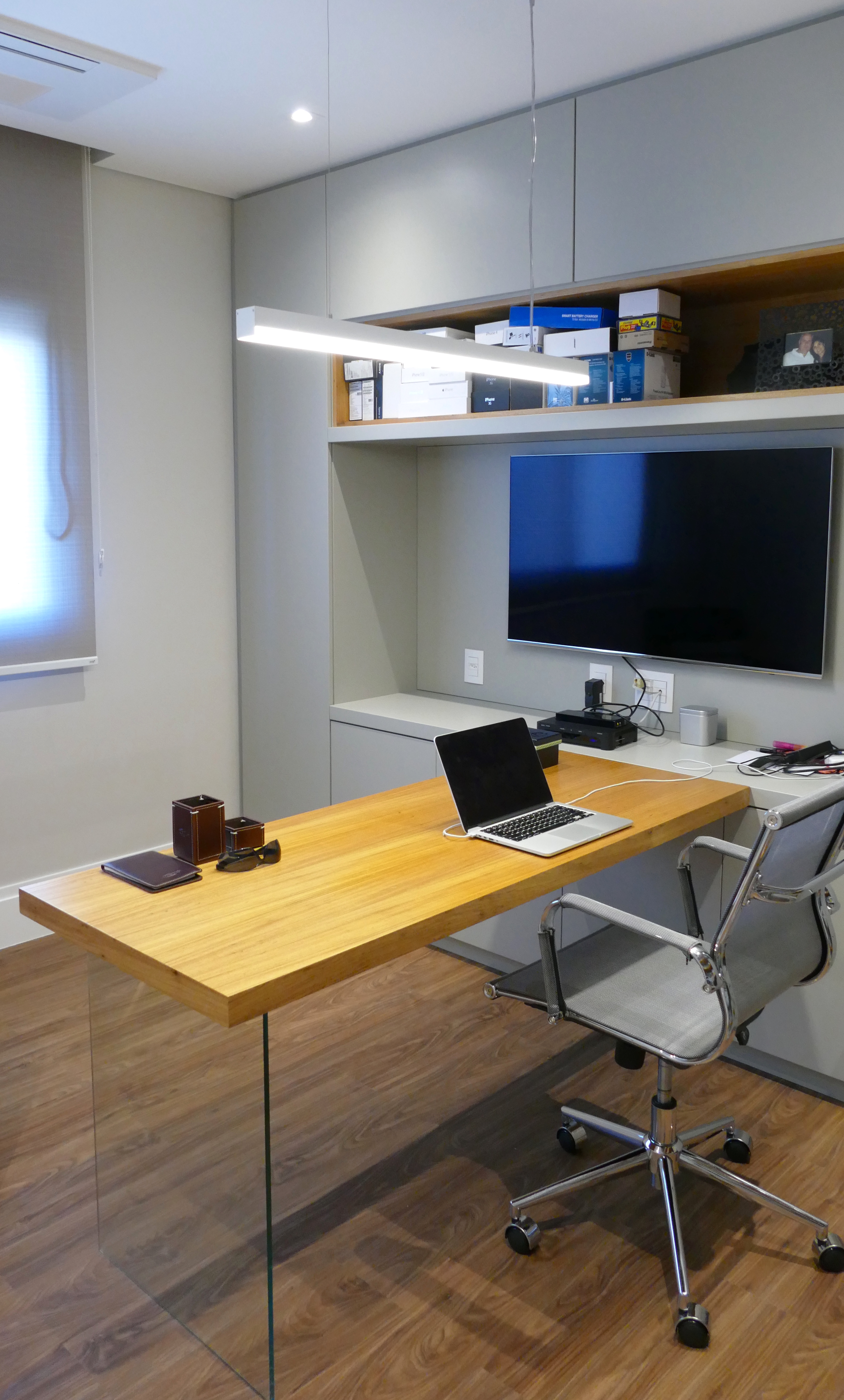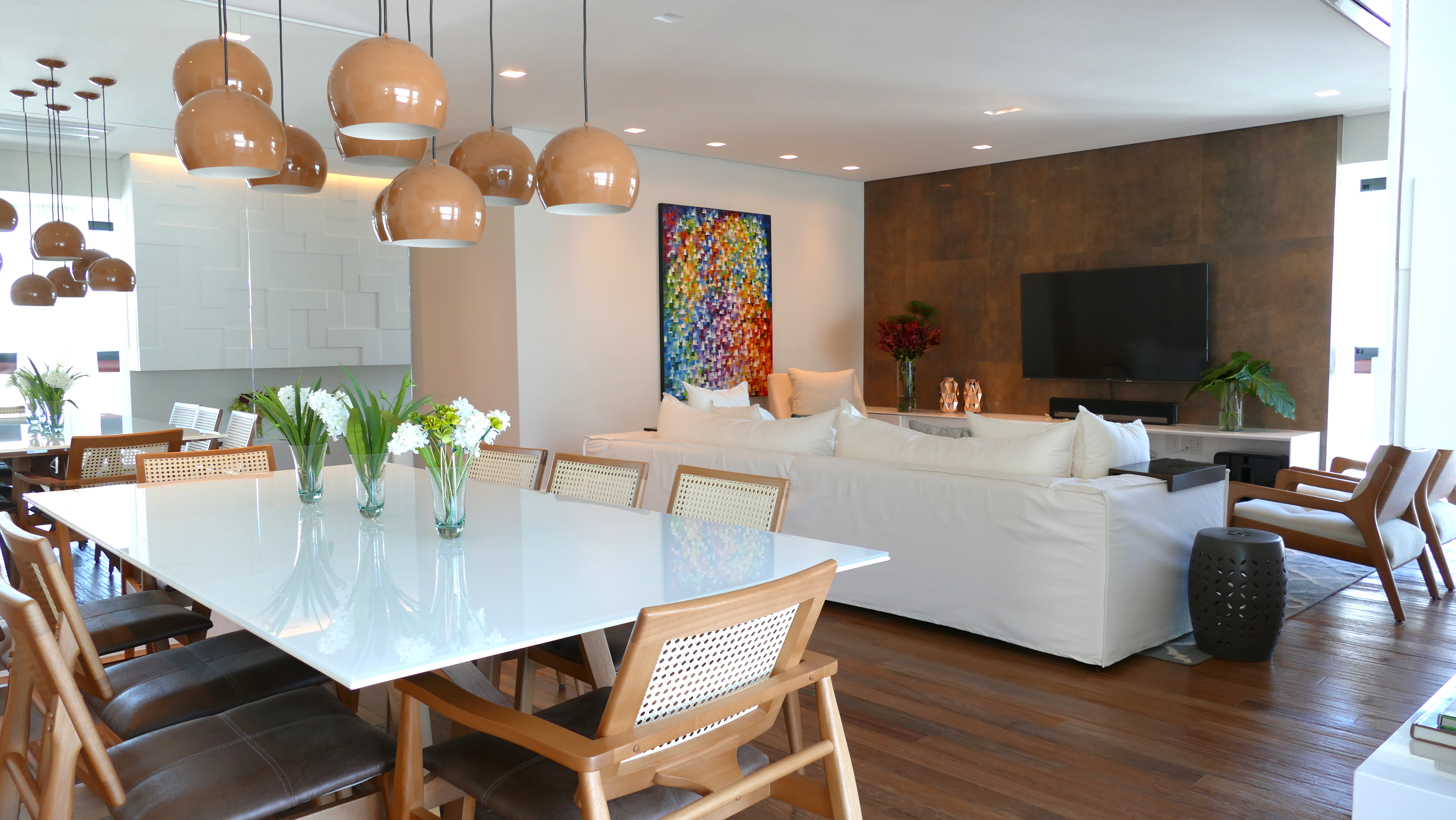 Neste amplo apartamento no Campo Belo, a moradora queria um belo home office e áreas mais abertas e bem iluminadas. Na área social a varanda foi integrada ao living e á copa ; um corredor íntimo foi transformado em sala de estudos para os filhos. todas as areas molhadas receberam novos revestimentos, bancadas e metais.