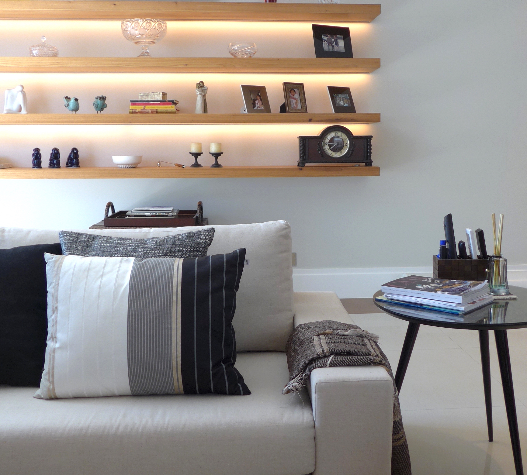 No que diz respeito à forma, a criatividade conta muito! As estantes vazadas estão tomando cada vez mais espaço nas residências, pois, além de funcionais, servem como divisória entre ambientes, permitindo a passagem de luz entre dois espaços. Os nichos também estão com tudo, pois, embutidos na parede, eles economizam espaço e, em estantes organizam visualmente o espaço, facilitando na hora de dispor os objetos.