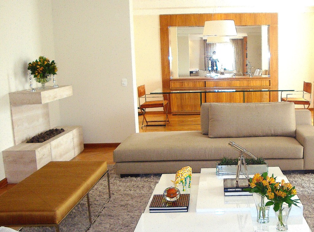 Outra opção para quem não gosta de fumaça dentro de casa é a lareira a gás, que pode ser alimentada por gás natural ou GLP – o gás de botijão. No caso de lareiras a gás em prédios, é preciso ter cuidado para que o ponto de gás seja aprovado pelo condomínio e necessita de registros e tubulação próprios. Este tipo de alimentação conta com dois modelos: lareira linear ou lenho cerâmico. No modelo linear são utilizadas pedras vulcânicas colocadas sobre os queimadores para reterem o calor, e sugerimos uma manta anti-chamas colada sob as pedras, para que possíveis acidentes sejam evitados; já o lenho cerâmico, são pedaços de lenha artificial que apenas simulam uma lareira a lenha, pois a cerâmica não chega a queimar de fato. Ambos os modelos podem ser instalados em qualquer ambiente e basta um botão para ligá-los, porém deve-se respeitar a distância mínima de 60cm entre as chamas e qualquer aparador superior, como o mármore.