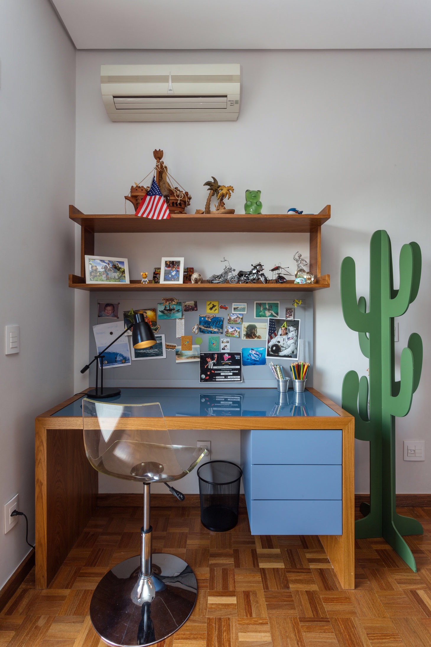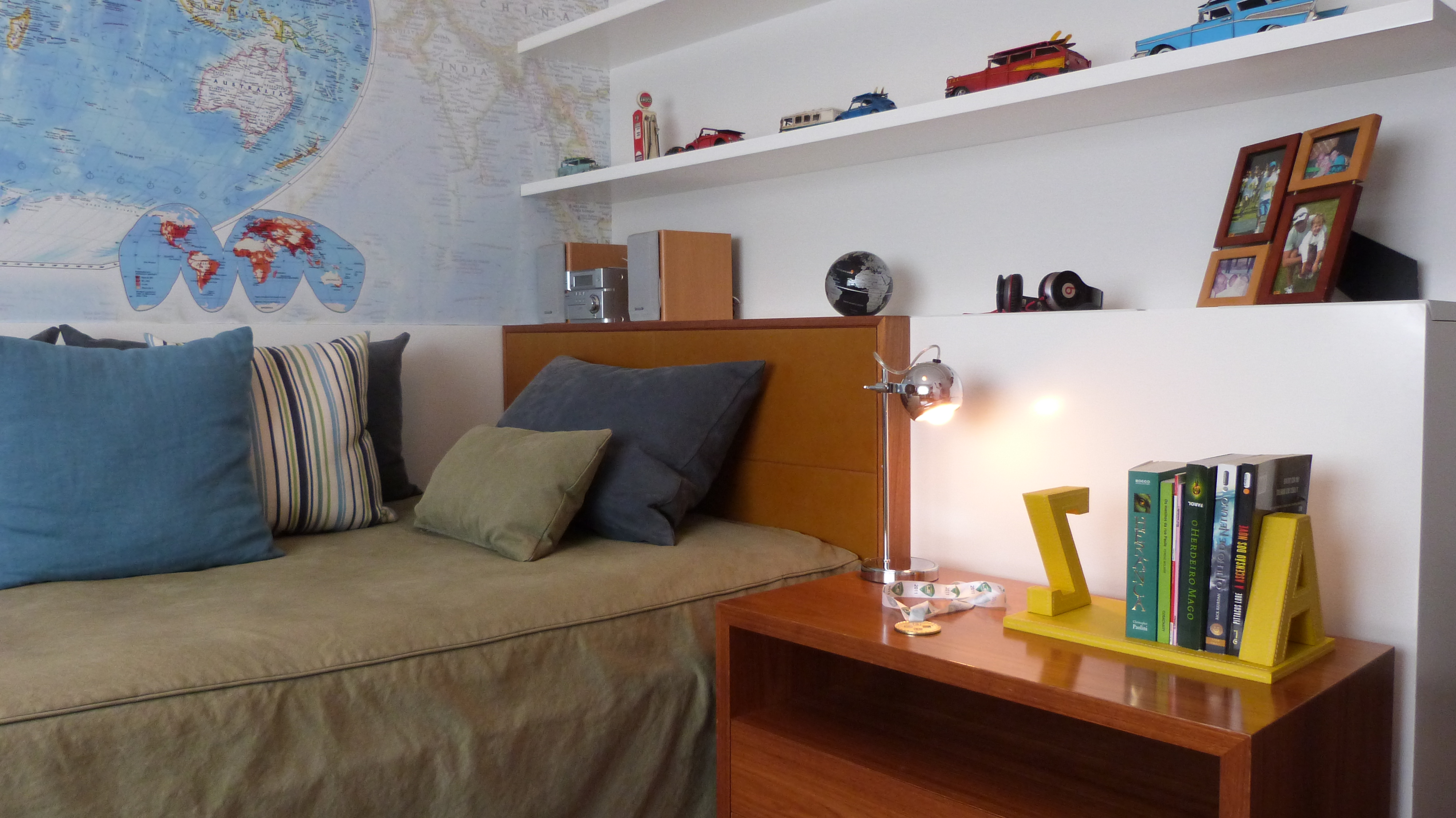 Nos espaços de estudo, prefira bancadas grandes, gaveteiro, uma cadeira ergonômica e, claro, um bom sinal wireless. Espaços de armazenamento são essenciais, pois jovens costumam ser desorganizados; prateleiras e nichos mais altos podem servir de decoração, deixando à mostra objetos e acessórios que não são tão utilizados ou mais frágeis; já baús, caixas e armários fechados servem para guardar. Os adolescentes gostam de expressar sua personalidade, portanto quartos temáticos como esportes, música e animais podem ser interessantes. Para aplicar estes temas nas paredes, existem papéis de parede laváveis, que são mais indicados.