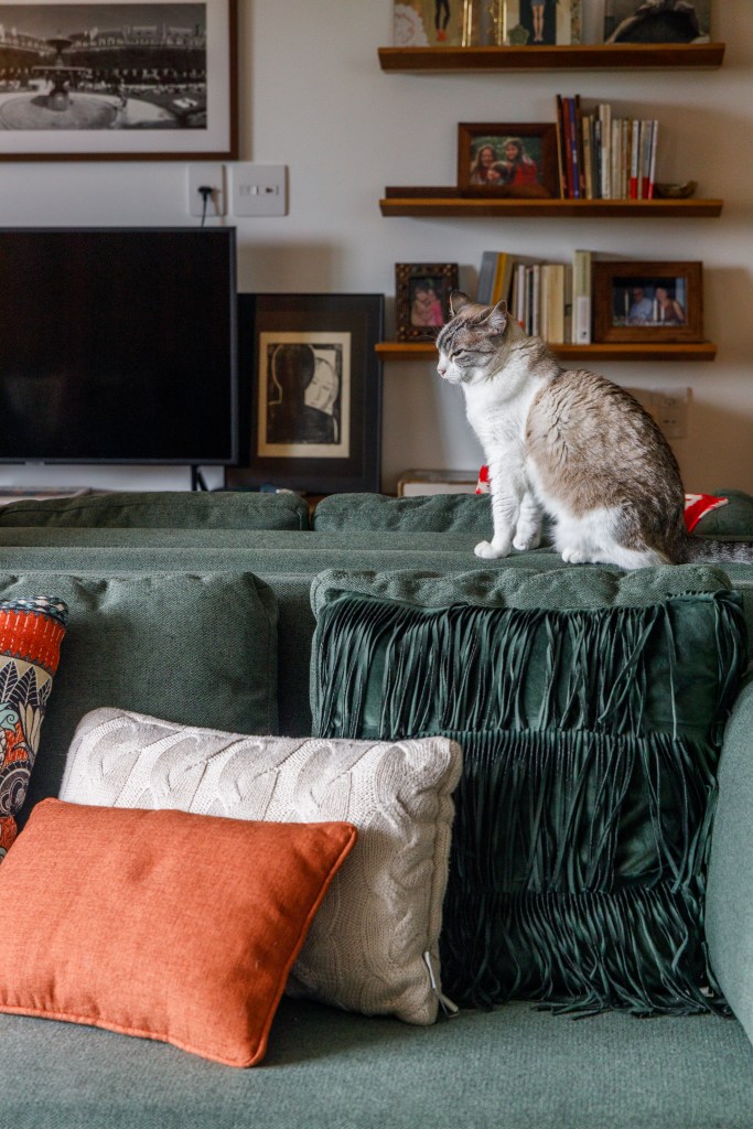 O mobiliário foi selecionado cuidadosamente, priorizando peças que criassem um ambiente acolhedor e cheio de personalidade. Elementos contemporâneos foram combinados com toques clássicos, resultando em uma composição equilibrada e harmônica. Materiais como madeira natural, tecidos aconchegantes e detalhes em cores vibrantes trouxeram vida aos ambientes, refletindo o estilo único da família.