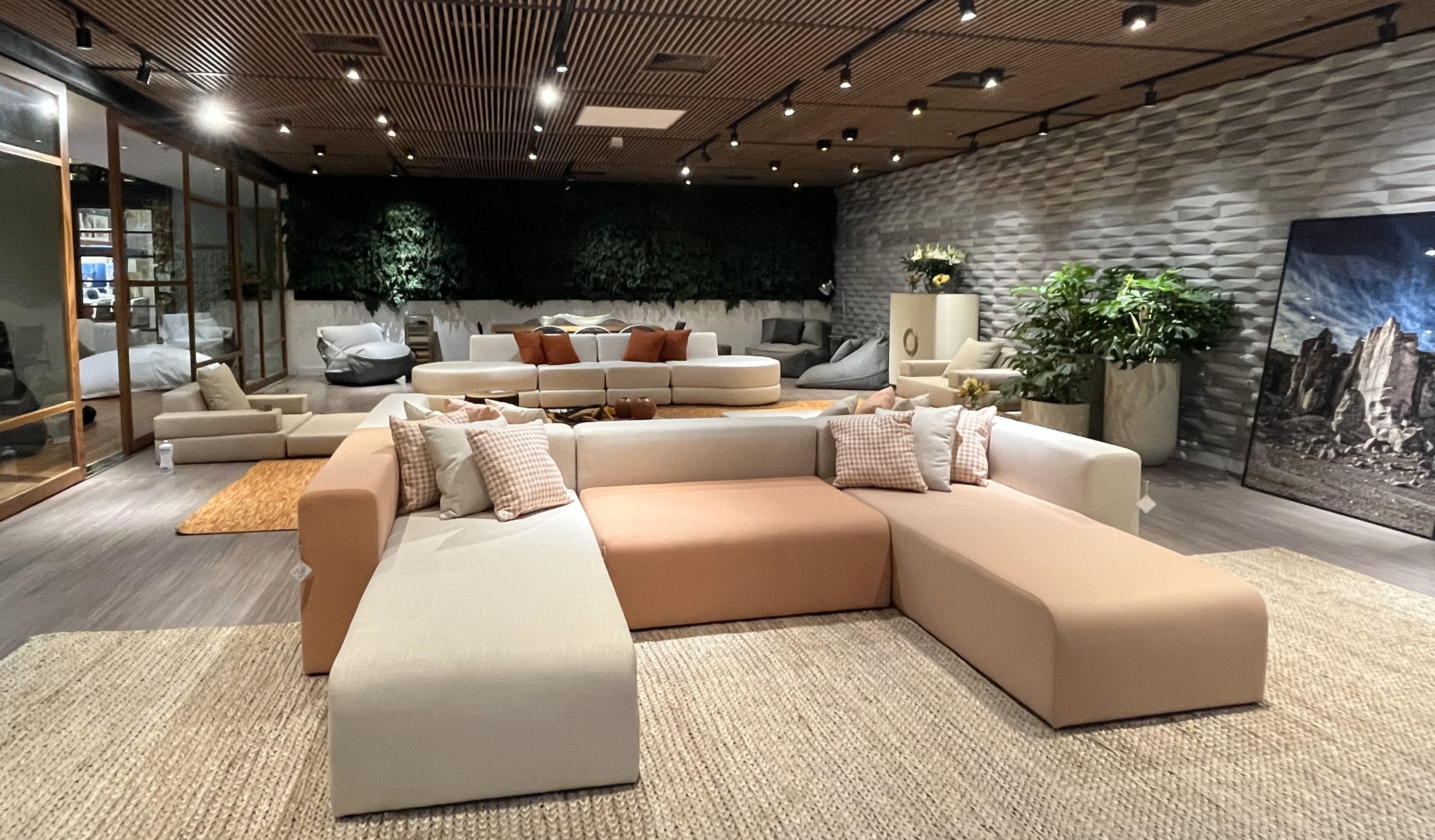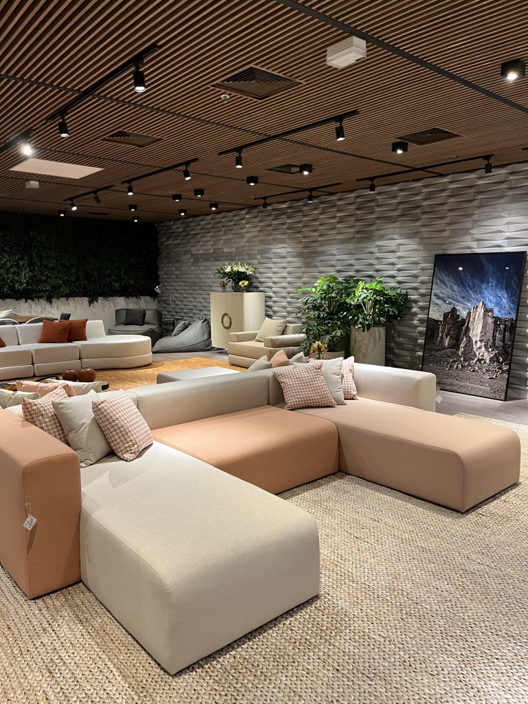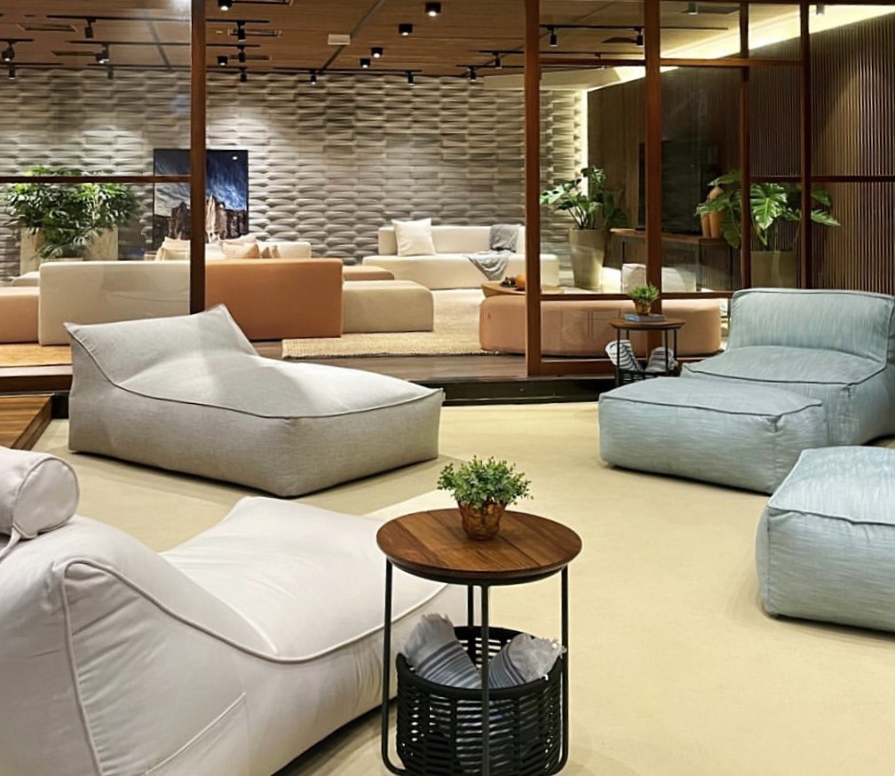 Por fim, o showroom contará com um espaço inspirado em praias, com piso vinílico, chaises confortáveis, vasos com bambus e um pendente decorativo de conchas, criando um ambiente descontraído e elegante. O projeto combina elementos naturais e contemporâneos, valorizando o pé-direito duplo e criando um espaço funcional e acolhedor que reflete a essência da HIO Decor.