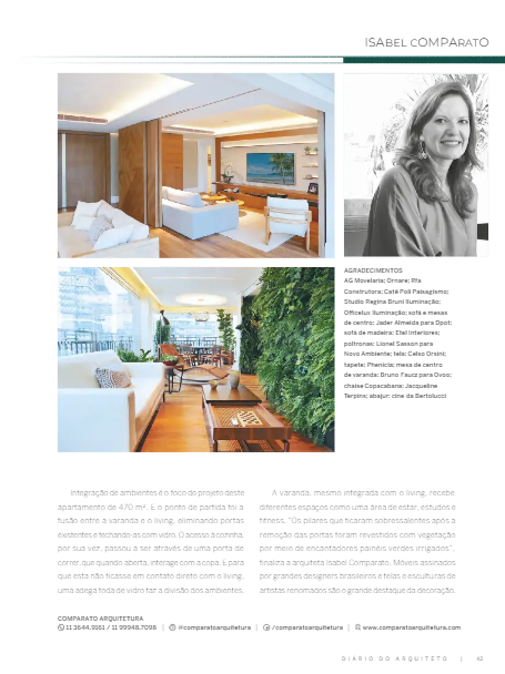Na última edição, o projeto desenvolvido pela arquiteta Isabel Konder Comparato foi publicado, ressaltando o compromisso do escritório com a excelência e inovação. Essa publicação é mais uma prova do reconhecimento da arquiteta como uma das principais referências no mercado, consolidando sua capacidade de criar ambientes únicos e personalizados.