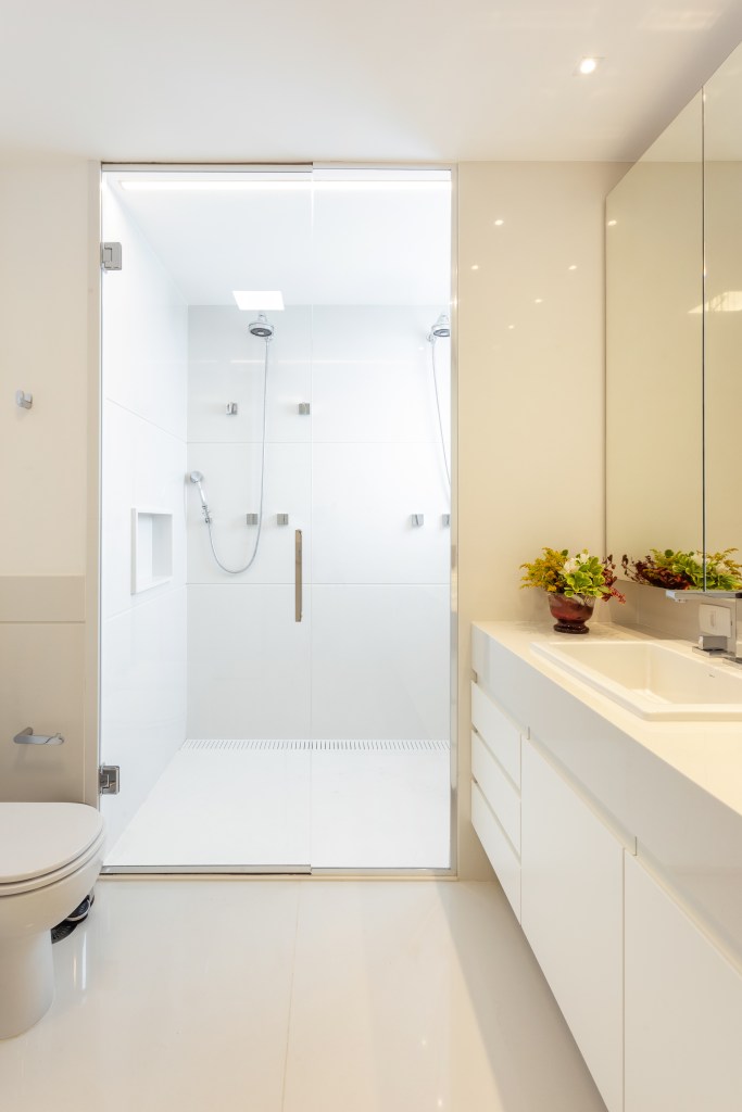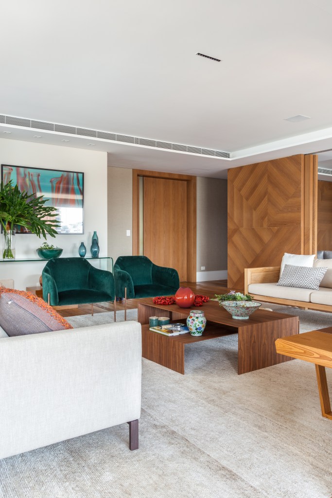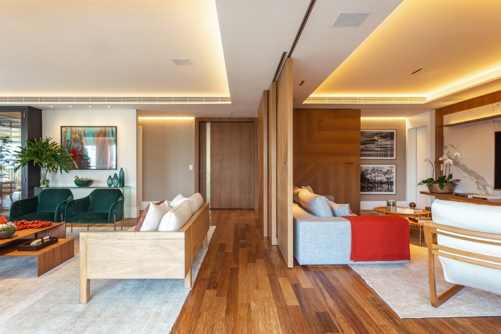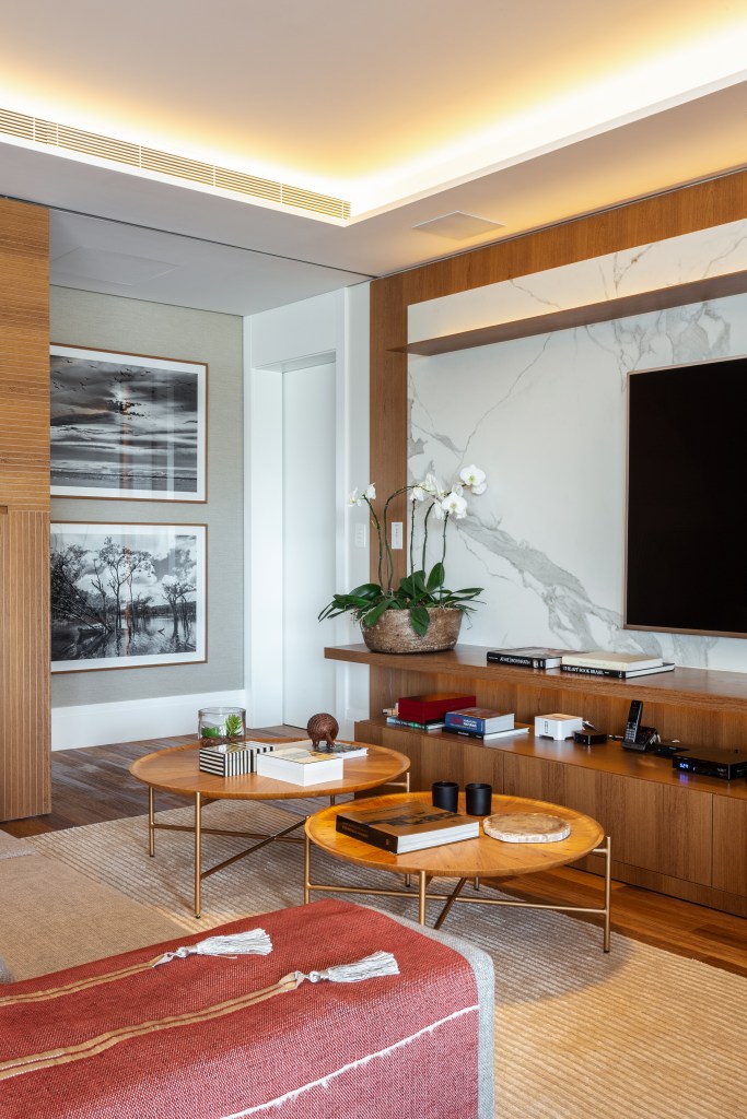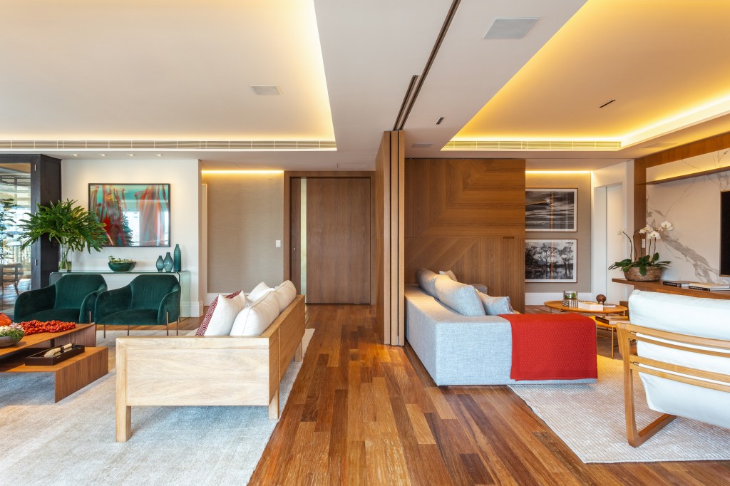 A iluminação, desenvolvida em parceria com o Studio Regina Bruni, destacou cada detalhe do projeto de forma elegante e funcional. Já o sistema de automação da Taag proporcionou praticidade no controle de iluminação, climatização e outros recursos. O conforto térmico foi garantido por um sistema de ar-condicionado com grelhas de insuflamento uniforme.