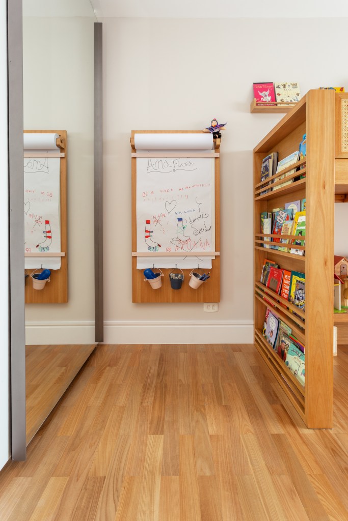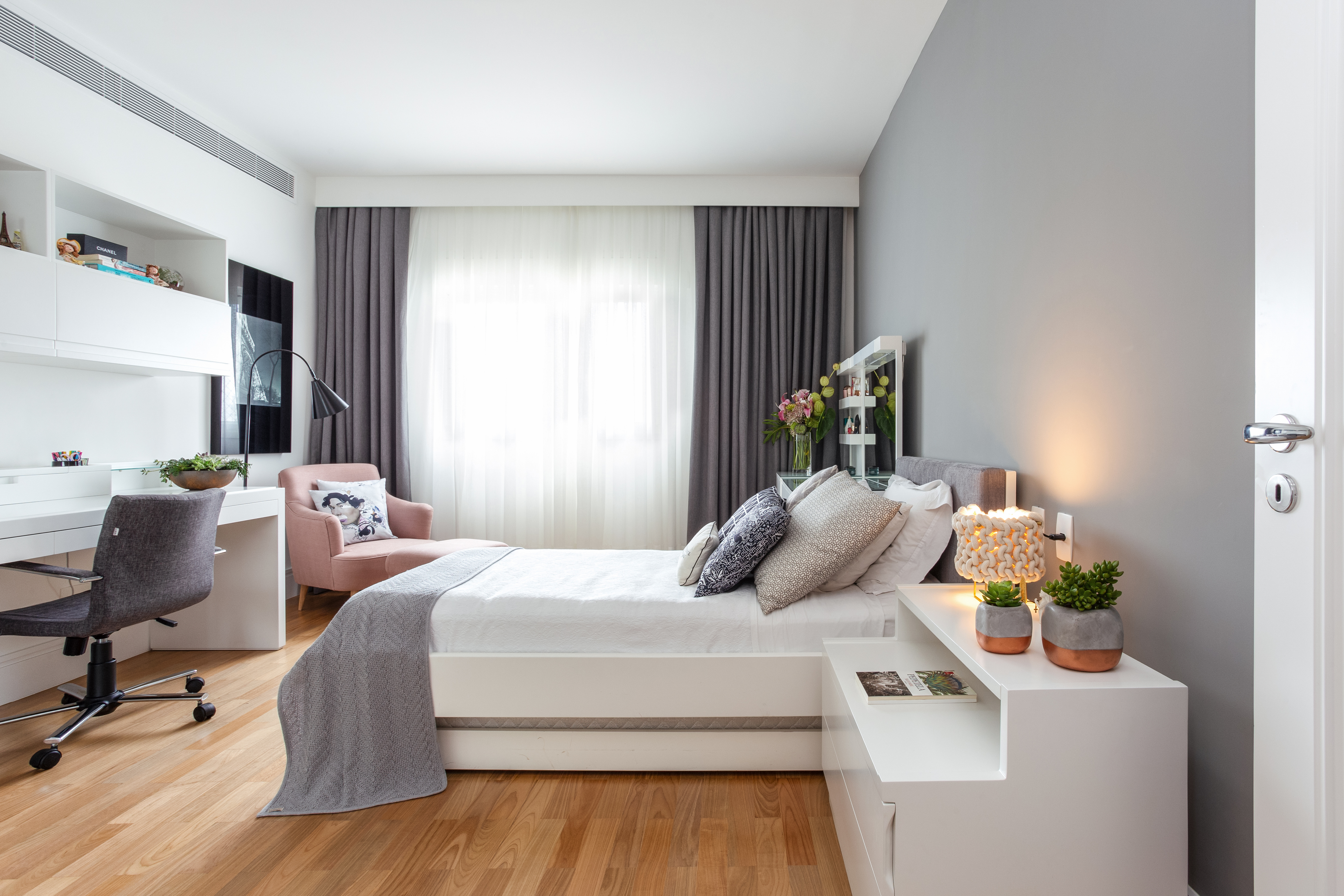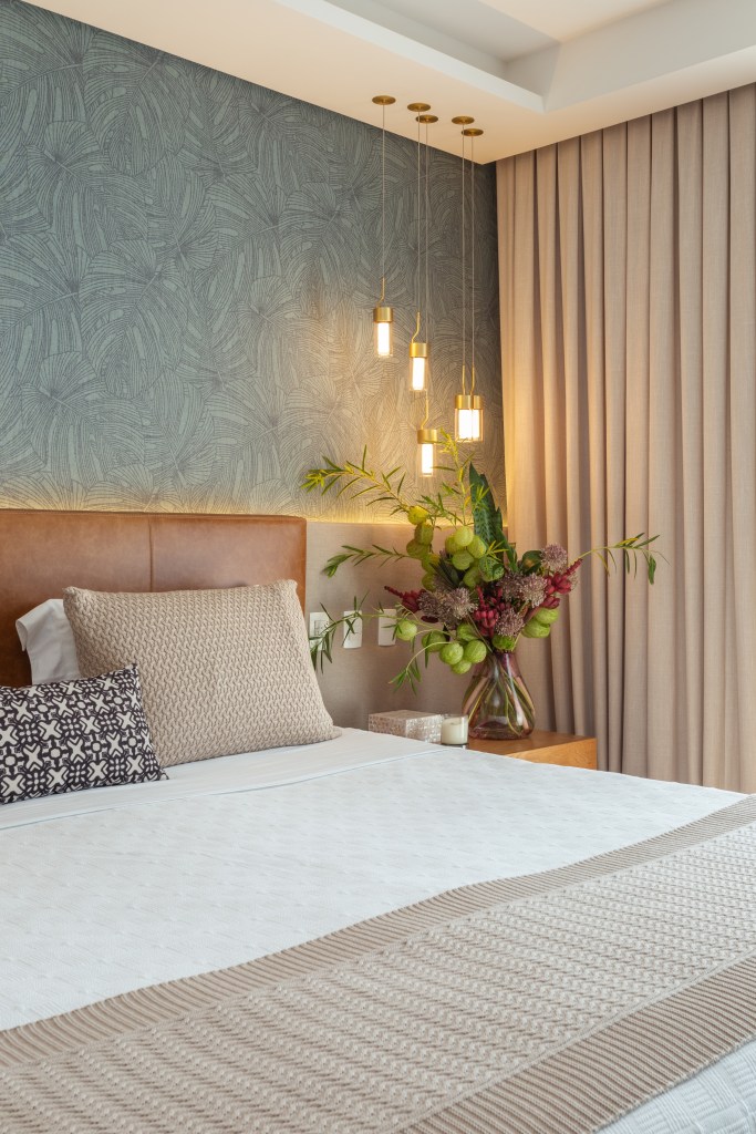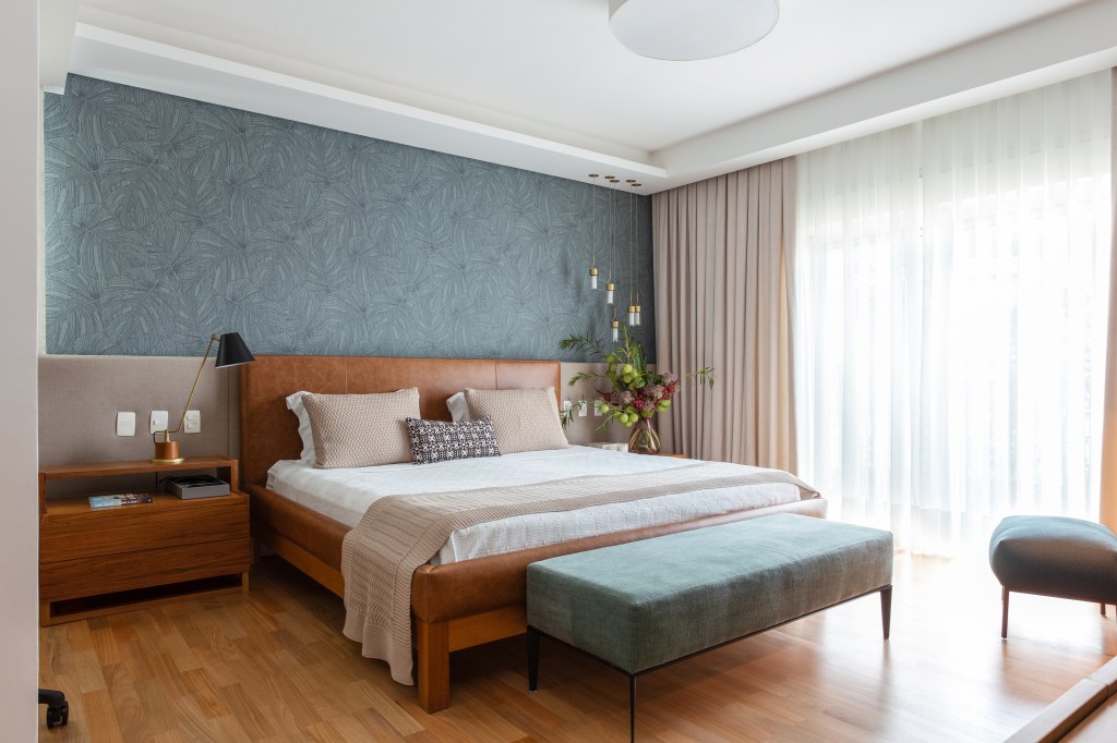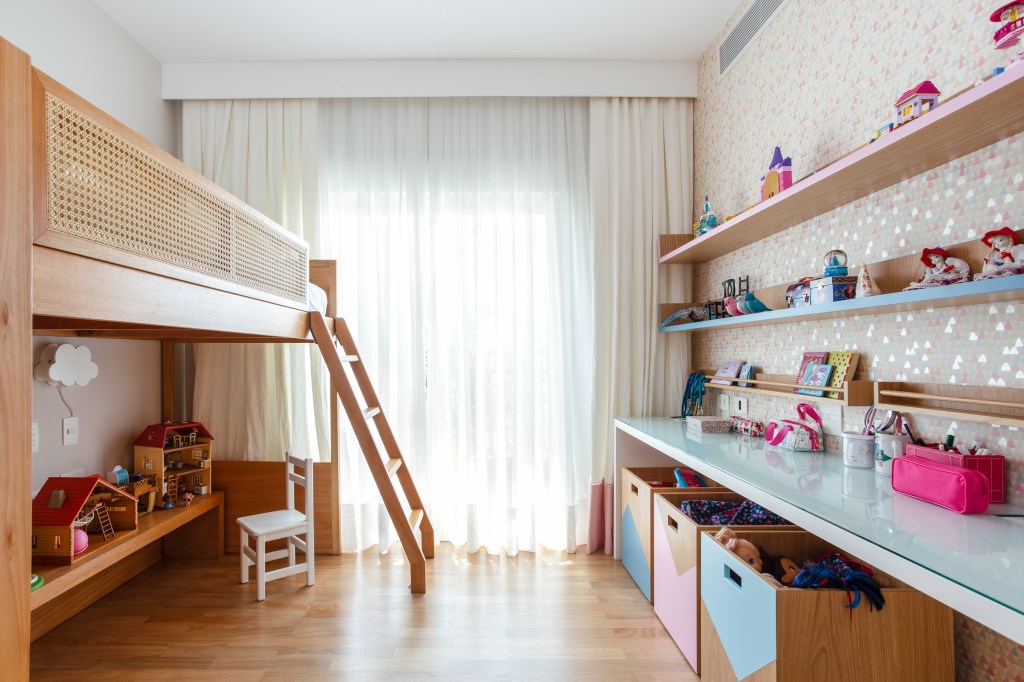 Os quartos foram personalizados para atender às preferências de cada morador, refletindo suas individualidades e criando refúgios acolhedores e únicos dentro do apartamento.